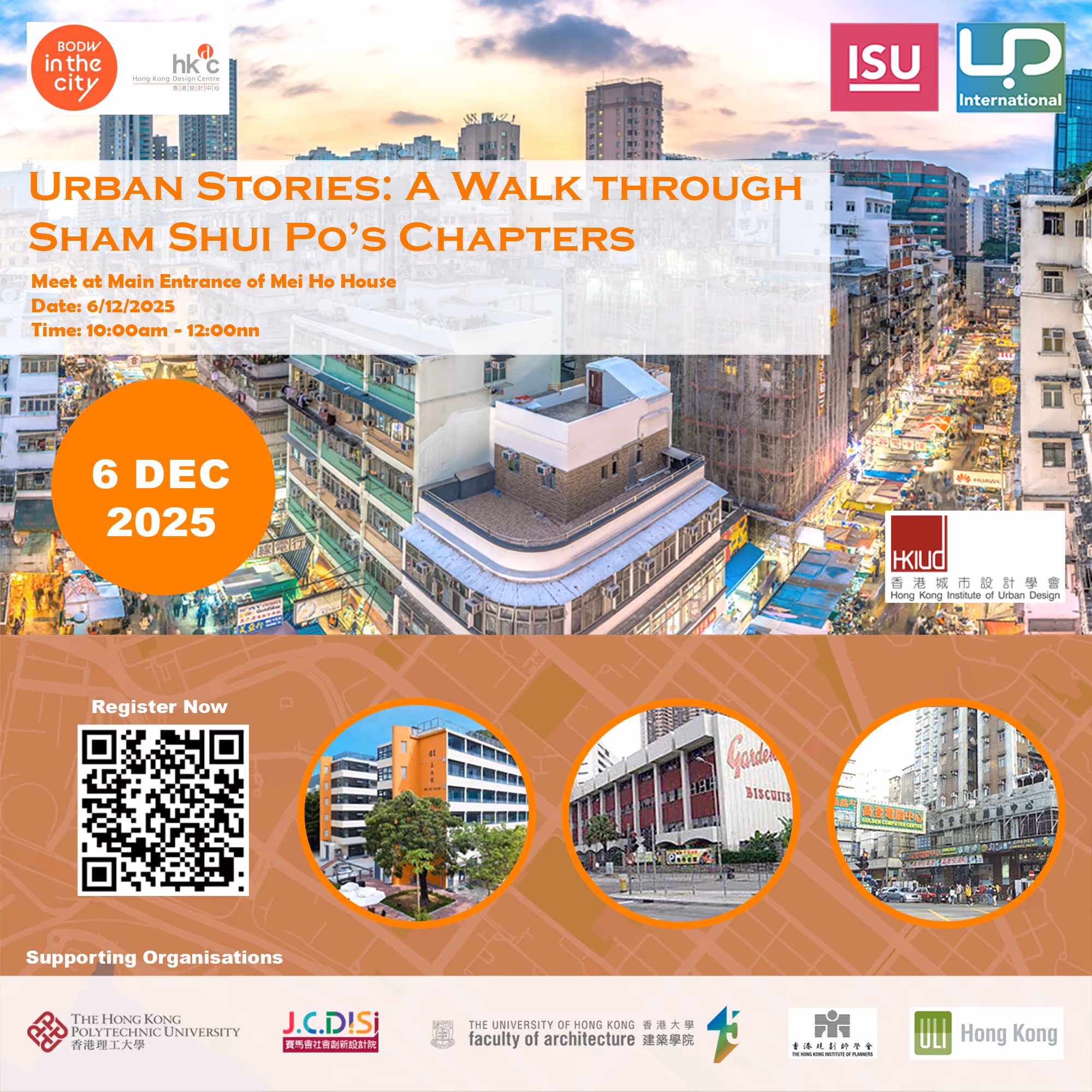 加入我們的兩小時步行導賞,由香港設計中心業務發展及項目總監胡燦森先生帶領,從美荷樓出發, 沿路探索嘉頓麵包廠、鴨寮街、大南街,和由香港設計中心負責營運的DX設計館,探索深水埗的豐富歷史和文化,聆聽這個社區的設計故事。